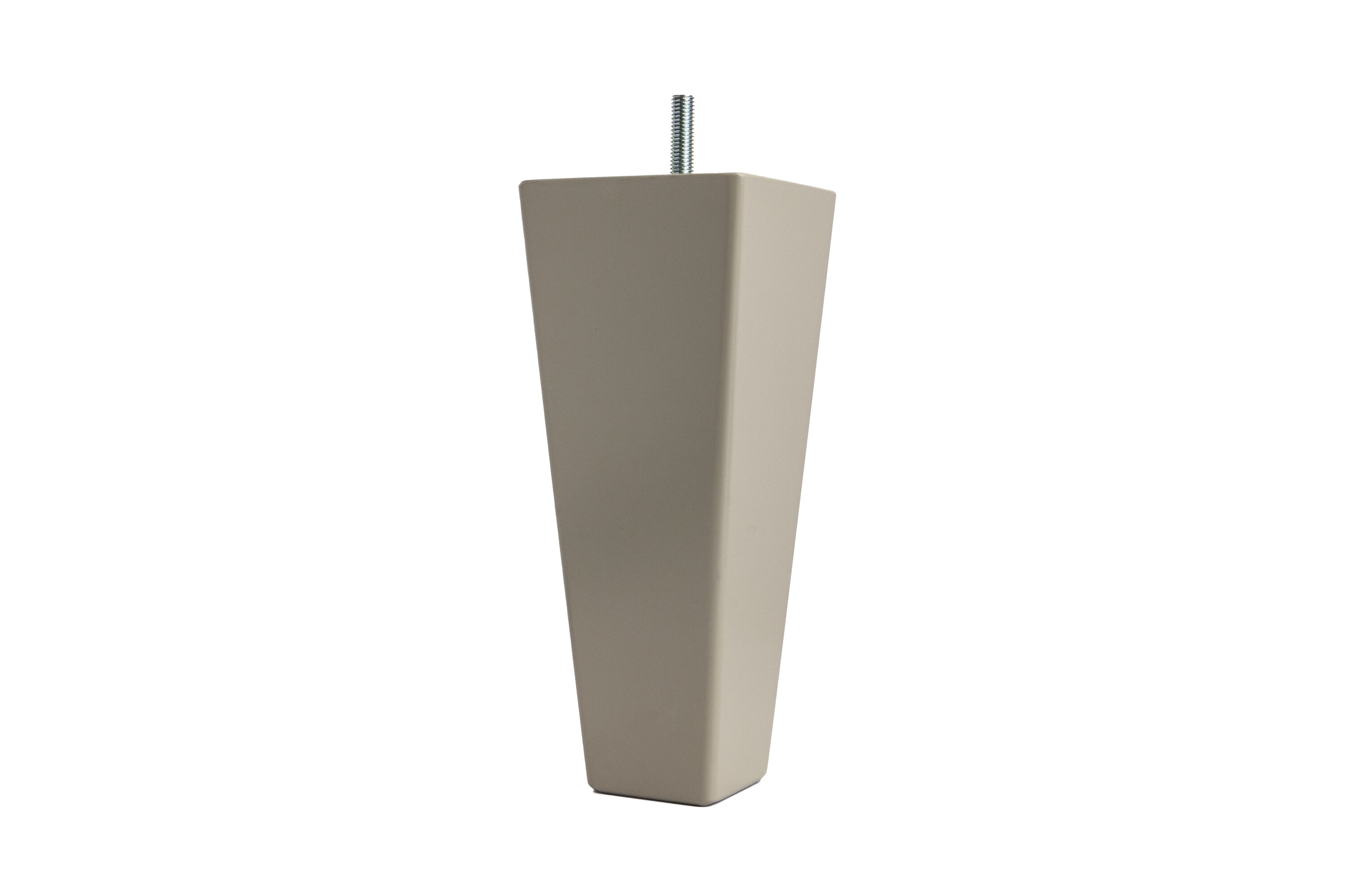 A square shaped wooden leg crafted in solid wood. The leg bas has a metal base finish for the finer look.