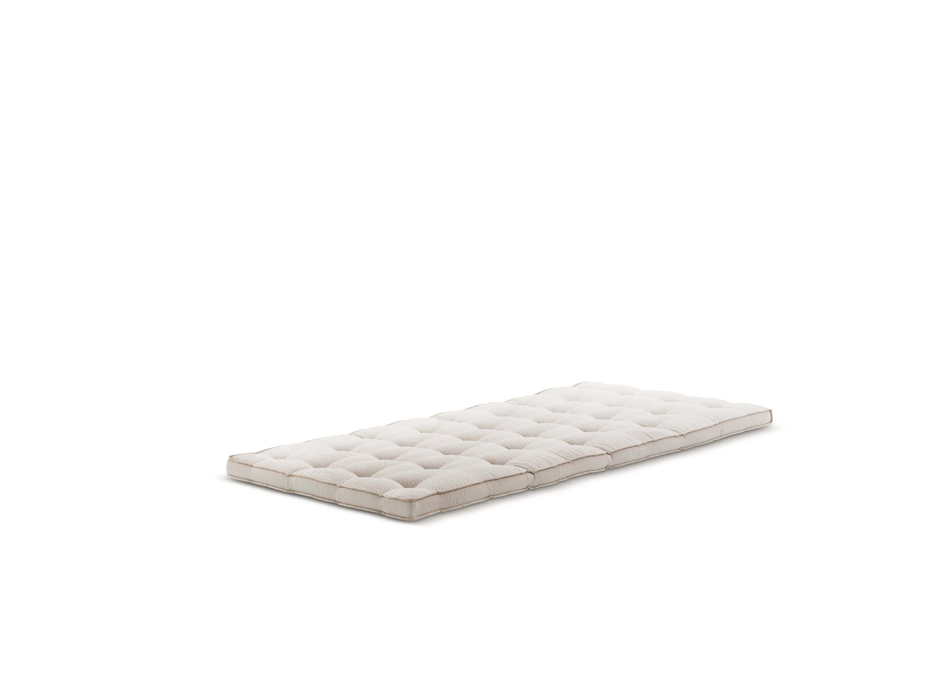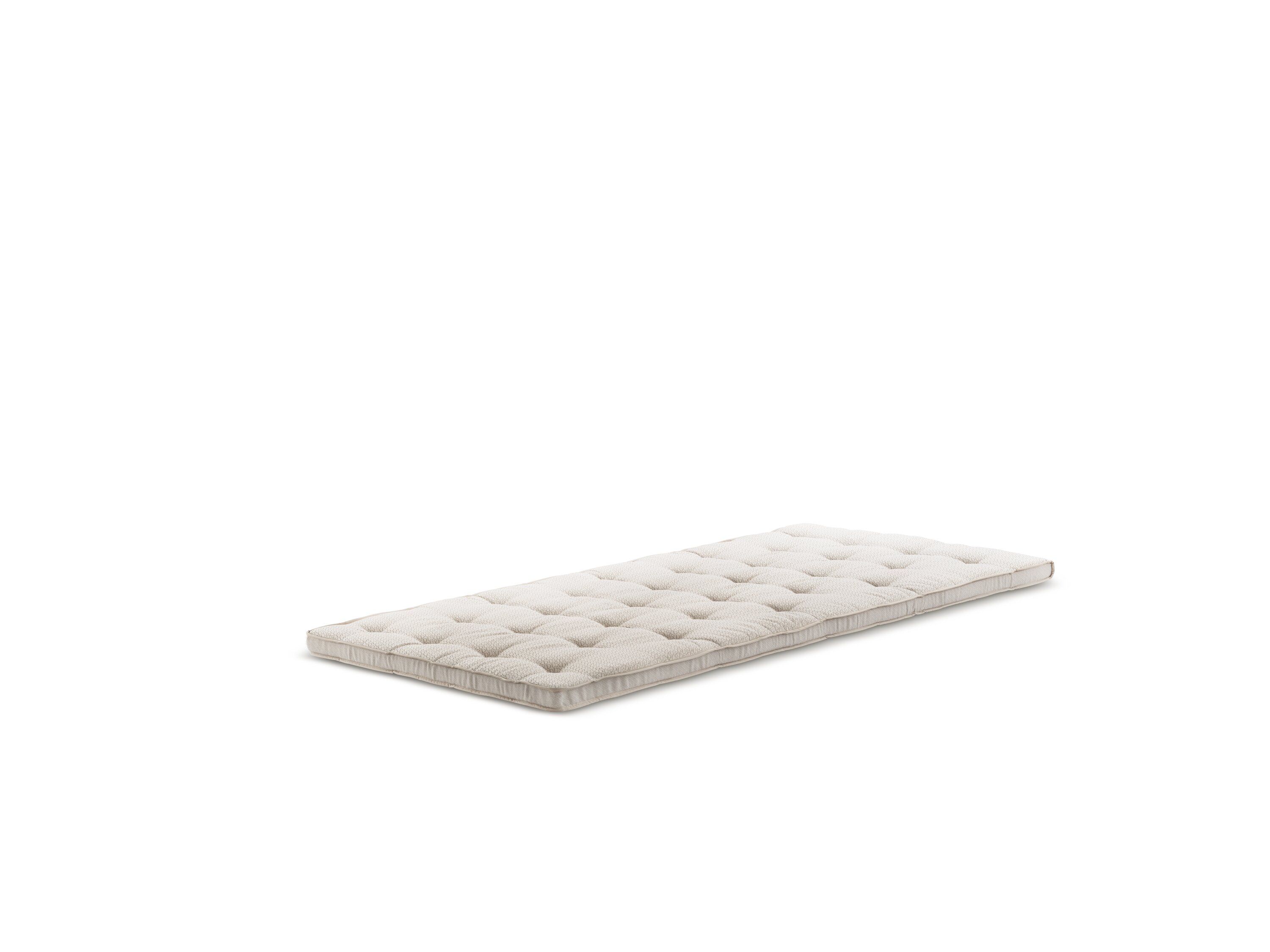 Part of our component-based sleep system, our deeply tufted top pads feature a core of natural latex wrapped in a premium natural wool and finished in a 100% cotton outer fabric. Available in three firmness levels, they are unfastened to the bed to ensure maximum comfort flexibility.