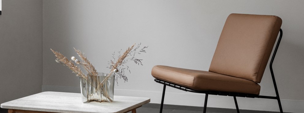 Domus chair steel has a black lacquered steel frame. The cushions are available in leather or fabric and sit on a classic braiding of tanned leather. The cushions are made of cold cured foam to ensure long-term comfort and performance. The model has a metal slatted back and no armrests. The chair’s small footprint makes it easy to position in any room. The Domus chair was revitalised during 2020 by Norm Architects as part of the DUX Domus Collection. It was restored to the range after DUX and Norm Architects browsed through the archive of old classics during a previous collaborative project. The Domus collection also includes the revitalised Domus chair wood with matching stool and Domus table.