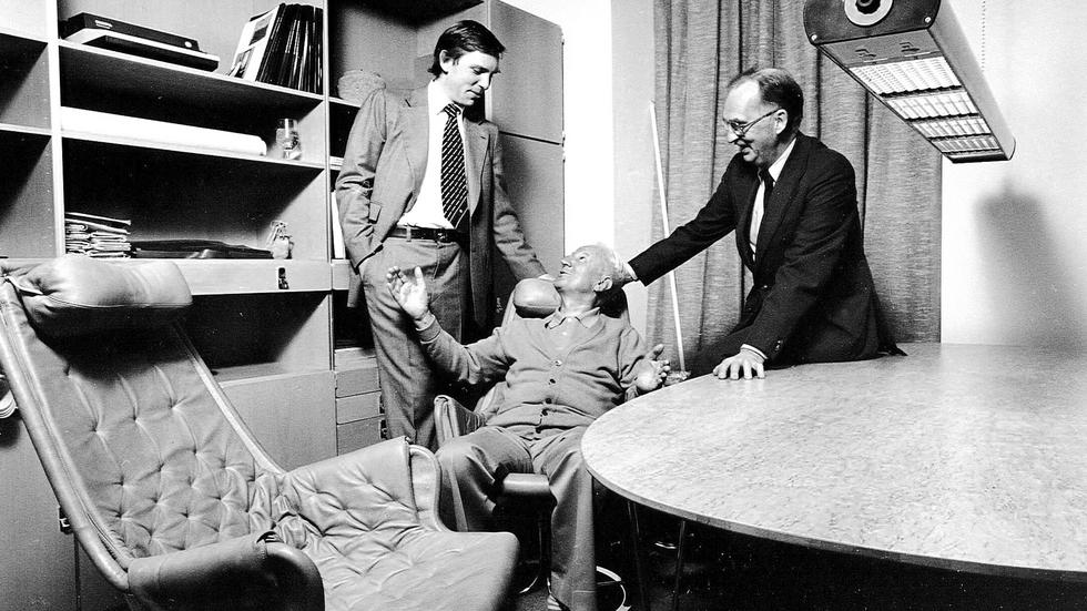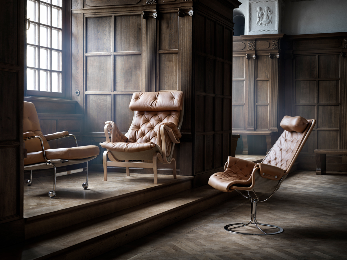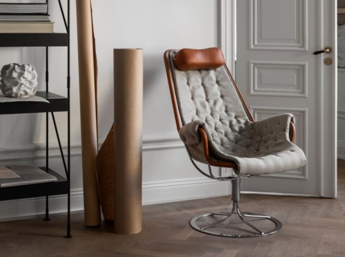 Jetson is an icon of Swedish furniture design. Bruno Mathsson spent three years working on this futuristic armchair, which takes its name from an American TV series. The result was unveiled at an exhibition at Nordiska Galleriet in Stockholm in 1969 and it was a resounding success. Jetson is a milestone in Bruno Mathsson’s production program and it’s had many imitators. A bowl-shaped seat and a high ergonomically-designed back with headrest. A base with a unique memory function, meaning the chair rotates back to its original position.