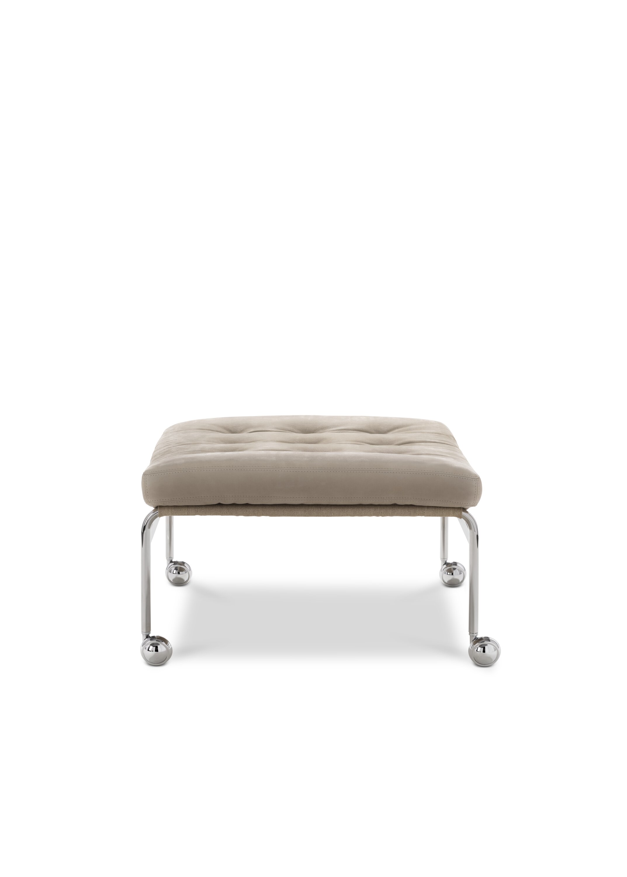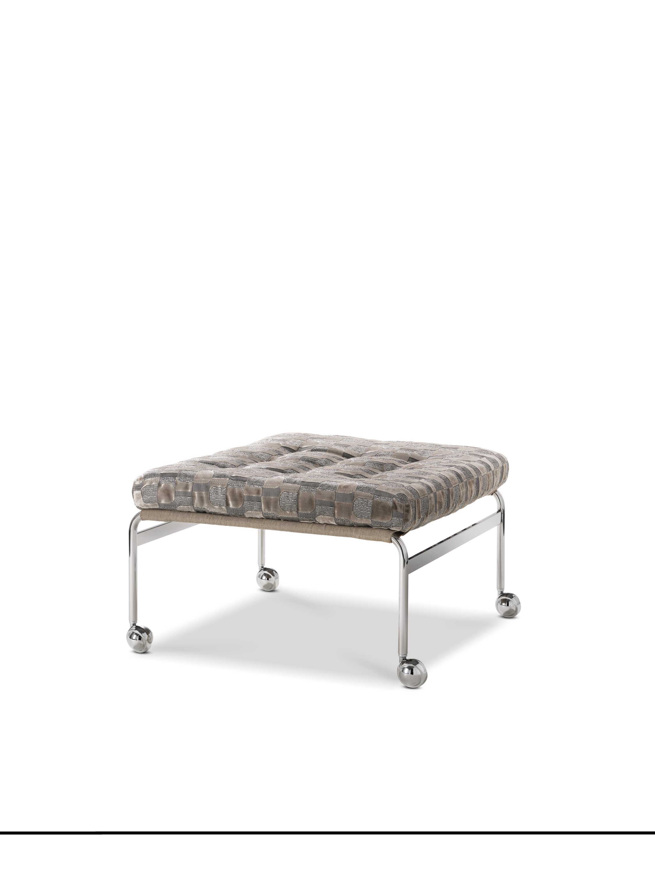 This classic elegant stool was designed by Bruno Mathsson in 1969 and was the first item of furniture in a successful collaboration that lasted for several decades. Comfortable stuffed cushions rest on a chrome-plated frame with supporting web.