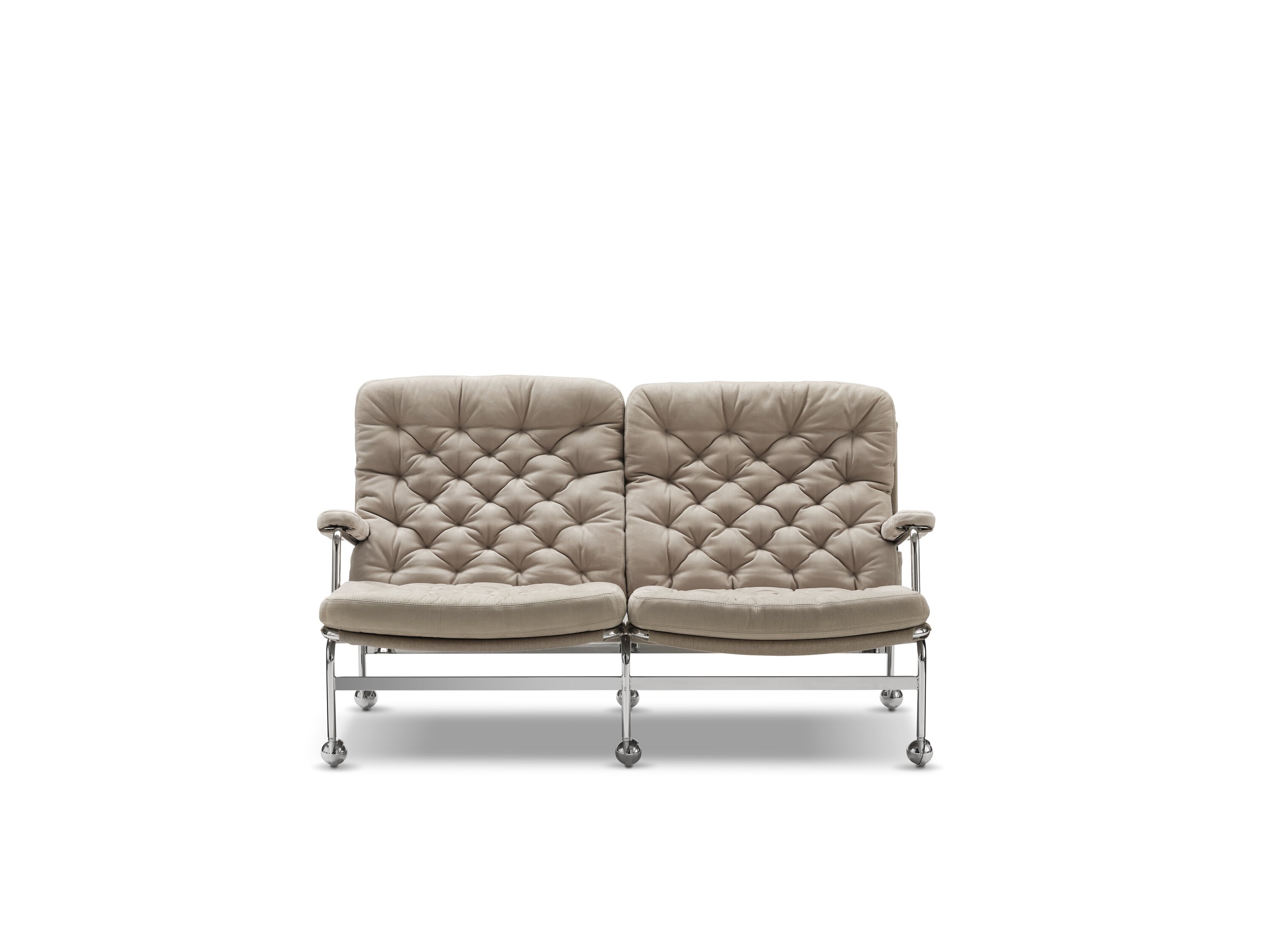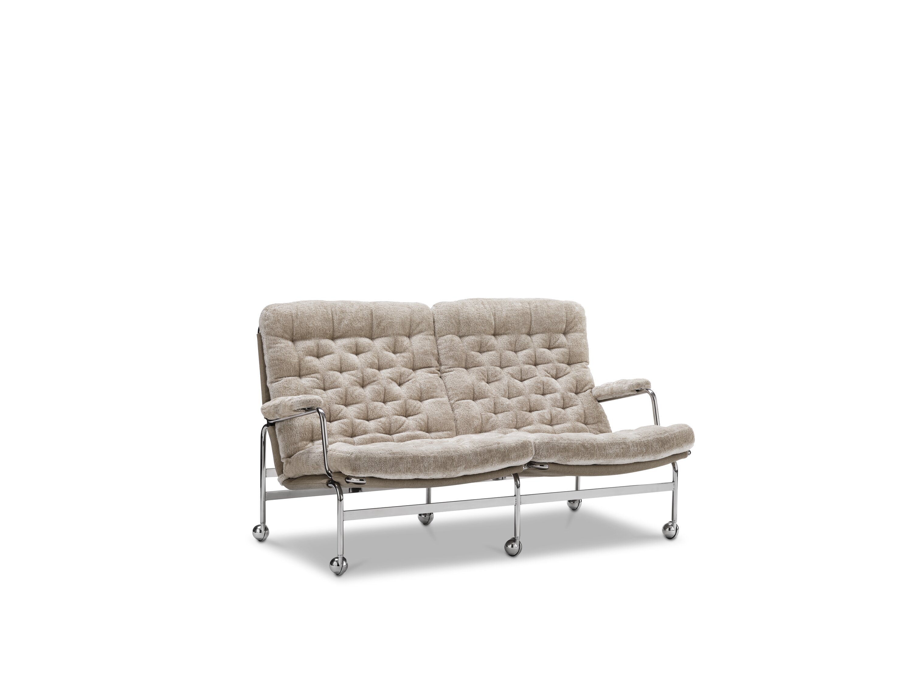 The Karin 73 is an elegant 2-seater sofa based on a classic design, with a fine chrome frame and deep-stitched cushions.