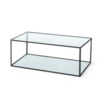 A classic table with a square shape in chrome or black metal, with a glass top and bottom.