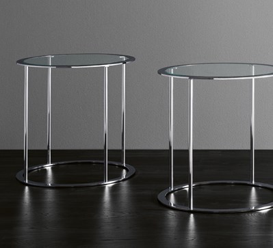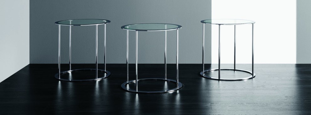 A classic round table in chrome, with manual height adjustment and a marble base.