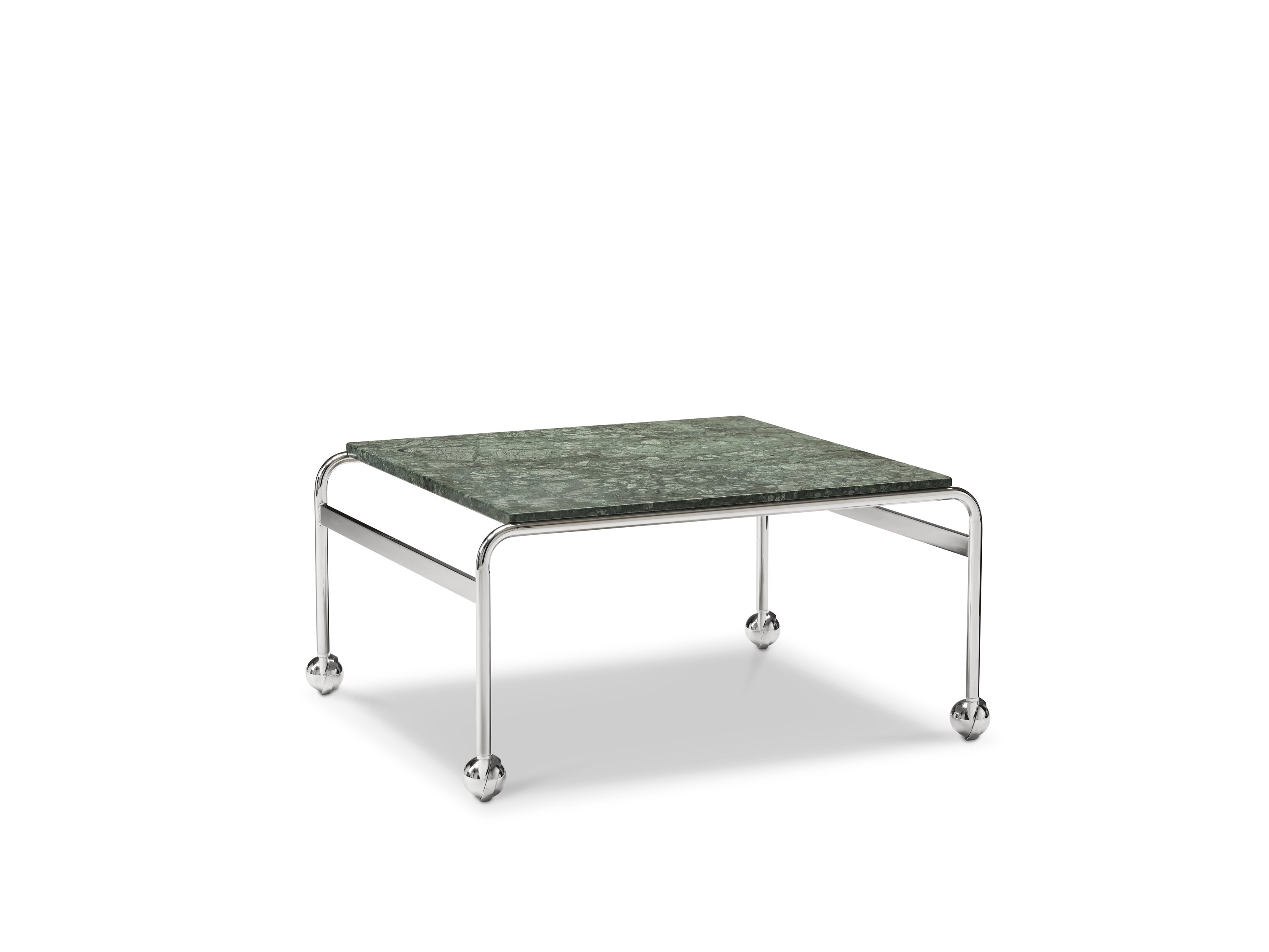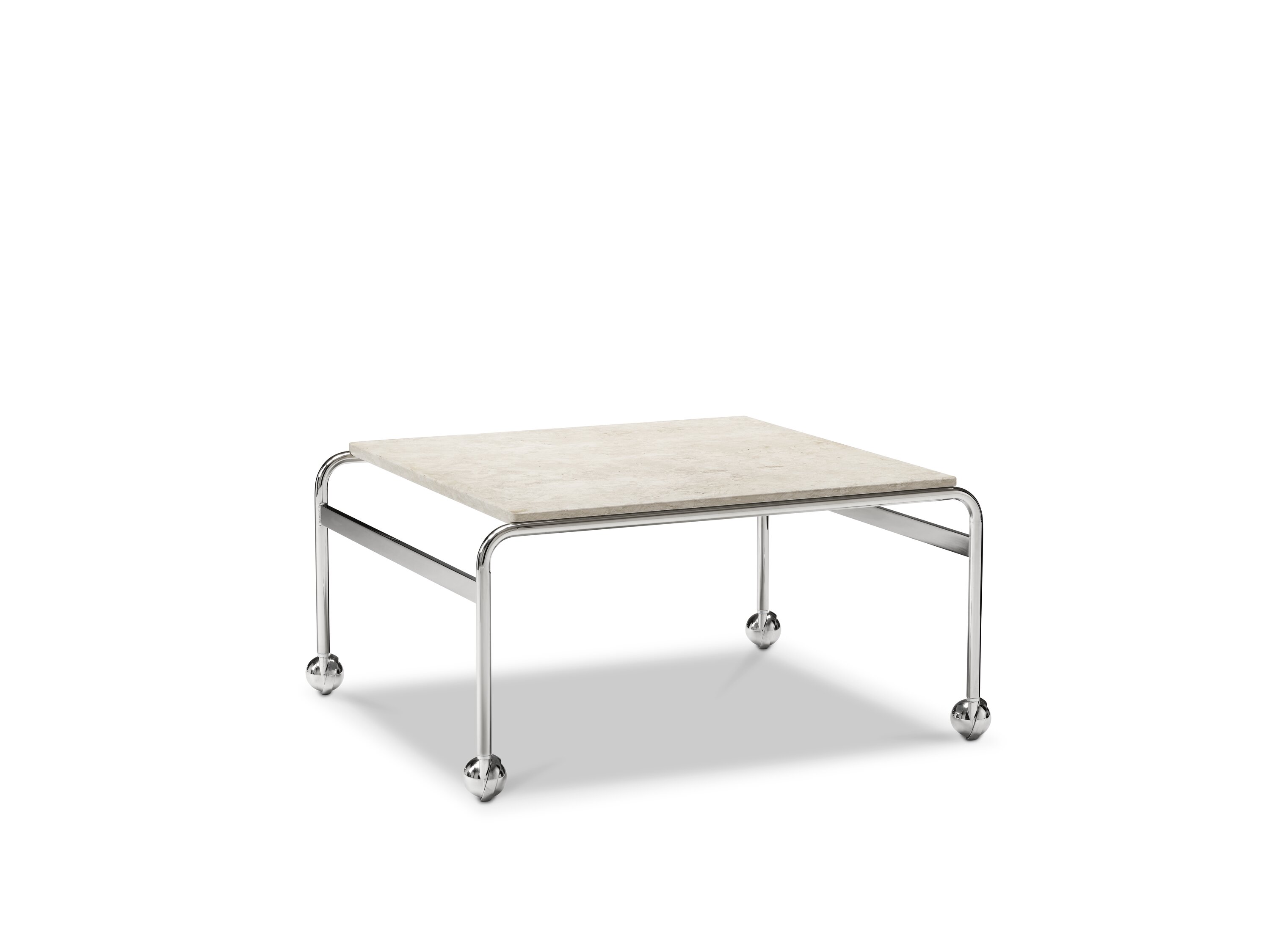 Based on Bruno Mathsson’s original table, designed to accompany his classic chair, this slightly larger option provides more surface space with the same elegant aesthetics of the Karin collection. The chrome-plated frame is topped in exclusive marble, limestone or walnut.