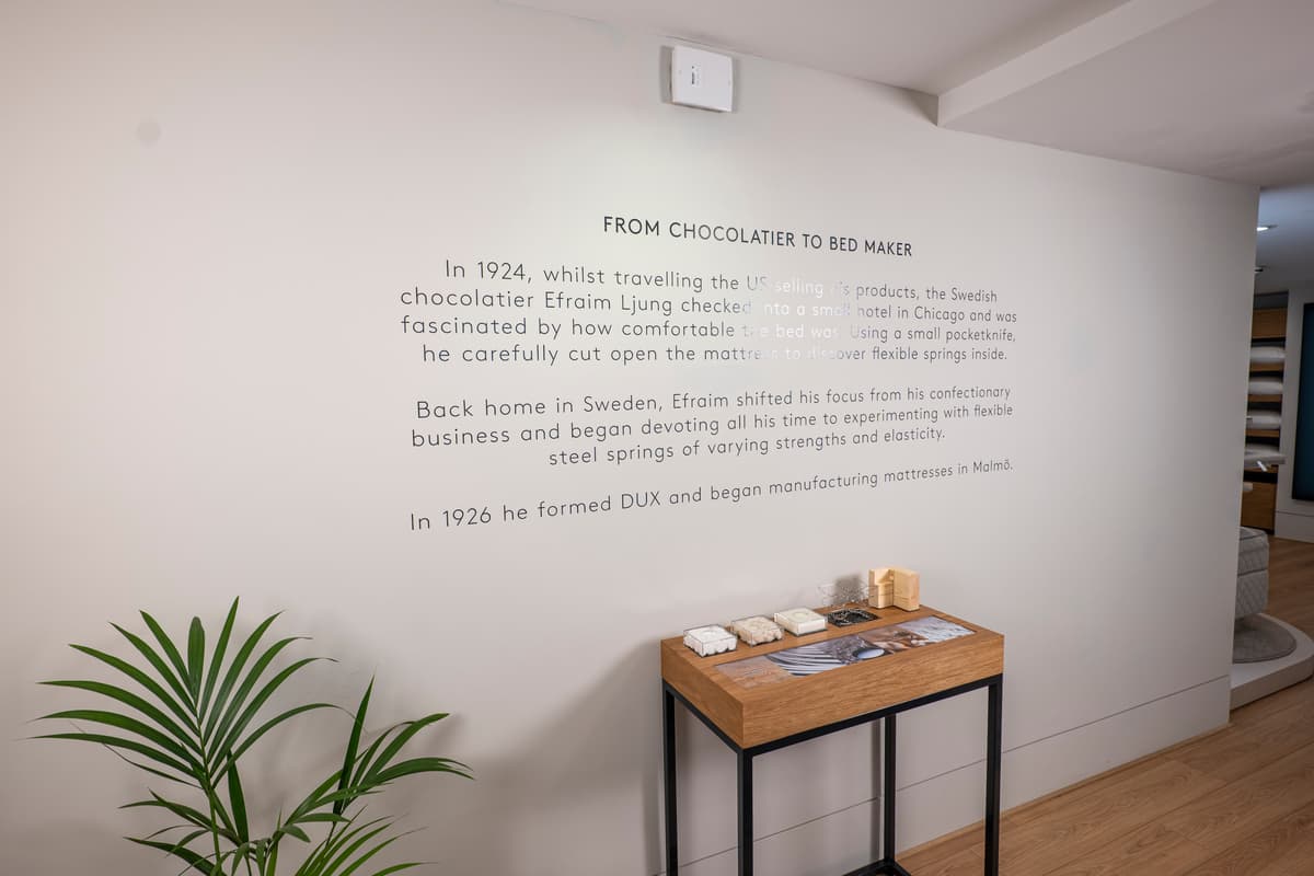 Since 1926, DUX of Sweden has been dedicated to craftsmanship, innovation, and creating the ultimate in sleep comfort. Our Stamford store offers a curated selection of luxury beds designed to enhance wellbeing and support sustainable living.